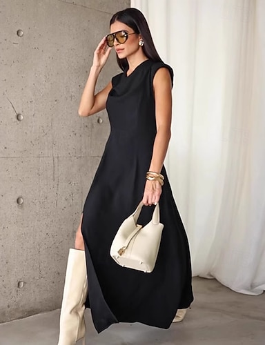Per donna Abito maxi Abito nero Abito da Cocktail Tubino Abito Formale Festa Abiti semi formali Quotidiano Feste Compleanno Vestibilità regolare Semplice Senza Maniche Scollo a V Nero Estate