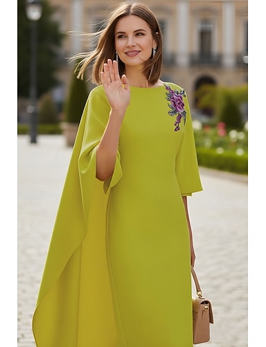 Tubino Colonna Lunghezza Tè Abito da cerimonia per signora Mezza Manica Scollo a Barca Elegante Cocktail Ospite di nozze Semi-Formale Chiffon con Applicazioni