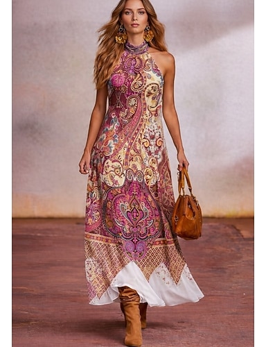 Linea ad A Abito Lunghezza alla caviglia Vestito da Festa Abito da Cocktail Abito da cerimonia per signora Mezza Manica Scollo Tondo Elegante Vintage Formale Ospite di nozze Ferie Chiffon con Stampa