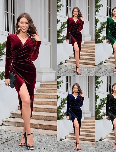 Tubino Colonna Lunghezza al ginocchio Vestito da Festa Abito da Cocktail Abito da invitata a nozze Abito da cerimonia per signora Manica Corta Manica Lunga Girocollo Scollo a Barca Elegante Vintage