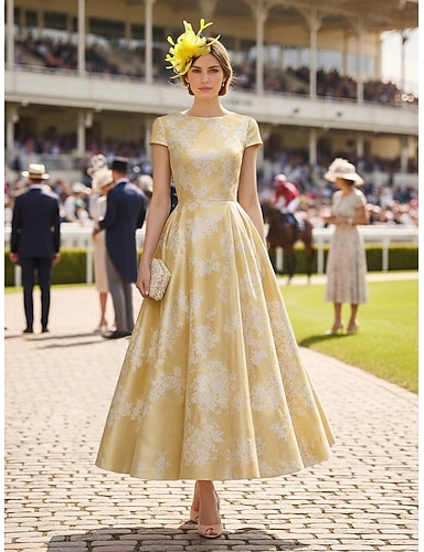 Linea ad A Abito Lunghezza alla caviglia Abito da Cocktail Abito da invitata a nozze Abito da cerimonia per signora Manica Corta Girocollo Elegante Casual Formale Ospite di nozze Derby del Kentucky