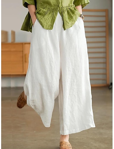 Per donna Finto cotone e lino Pantaloni Pantaloni Estivi Pantaloni da Spiaggia Vacanza Moda Casual Lungo Vita Alta Semplice Coulisse Tasca Comodità All'aperto Micro-elastico Quotidiano Spiaggia Ferie