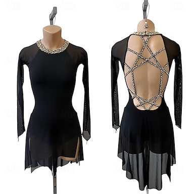Abito da pattinaggio artistico Per donna Ragazze Pattinaggio sul ghiaccio Vestito Nero Foro per il pollice Schiena aperta Rete Alta elasticità Allenamento Competizione Vestiti da pattinaggio sul