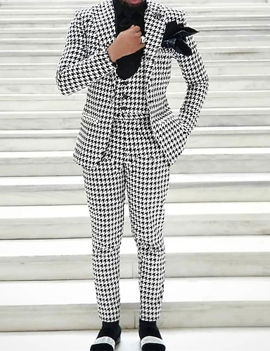 Uomo Smoking Completi Matrimonio Bianco / Nero Primavera, Autunno, Inverno, Estate Tuta A lancia Moda Affari Pied-de-poule Vestibilità su misura 3 pezzi Monopetto a un bottone