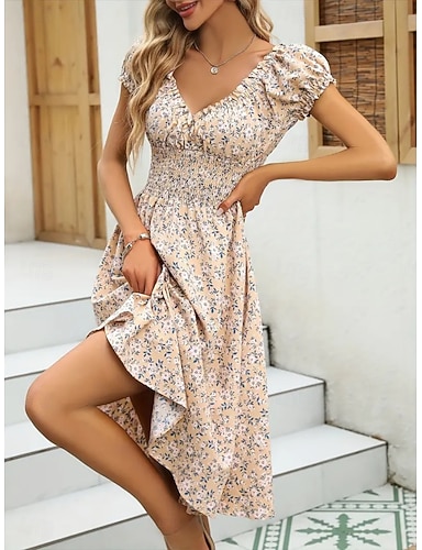 Per donna Abito al ginocchio Vestito Casual Abito a trapezio Abito Floreale Elegante Moda Moderno All'aperto Vacanza Uscire Vestibilità regolare Floreale Manica Corta Scollo a V Rosa Verde Cachi