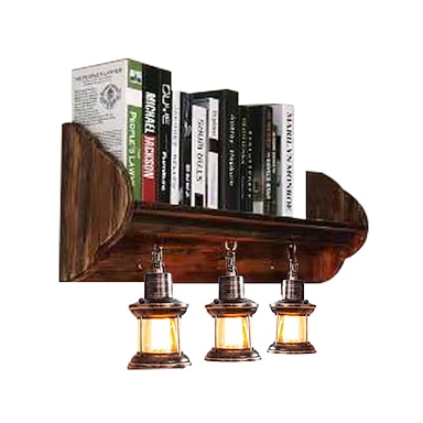 lampada da parete retrò in legno da scaffale 90 cm 35,3 pollici lampada da parete rurale in stile industriale retrò a 3 teste scaffale per scaffali apparecchi di illuminazione retrò lampada da parete