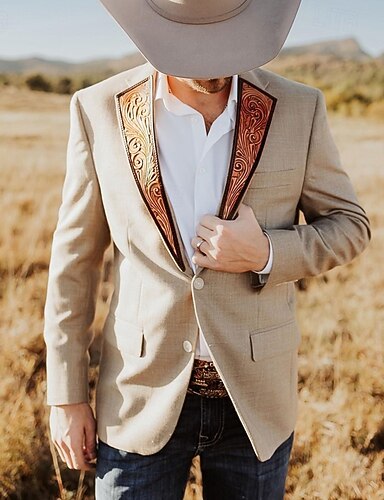 Per uomo Blazer Affari Cocktail party Ricevimento di matrimonio Moda Casual Primavera Autunno 85% cotone Semplice Tasca Bottoni Confortevole Monopetto Giacca Cammello