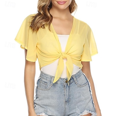 Scialle Donna Coprispalle Scialli della Madre Scialli della Sposa Scialli dell'Ospite di Nozze Elegante Signore Formale Manica Corta Chiffon Stole da matrimonio Con Colore puro Per Quotidiano Estate