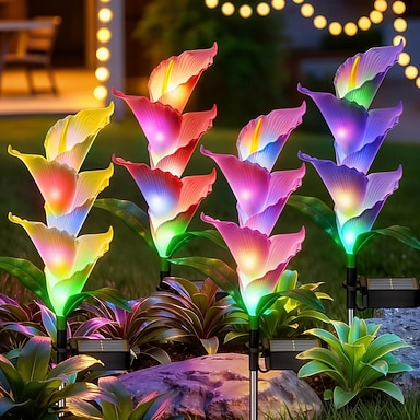 2 luci solari a LED impermeabili da esterno a forma di calla, con gradiente di colore variabile, ideali per giardino, cortile, vialetto, prato, feste e illuminazione ambientale estiva.