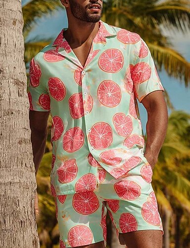 Per uomo Frutta 2 pezzi Set di camicie Camicia Manica Corta Pantaloni corti Colletto cubano Vacanza Casuale Quotidiano Feste Stampa 3D Estate Verde