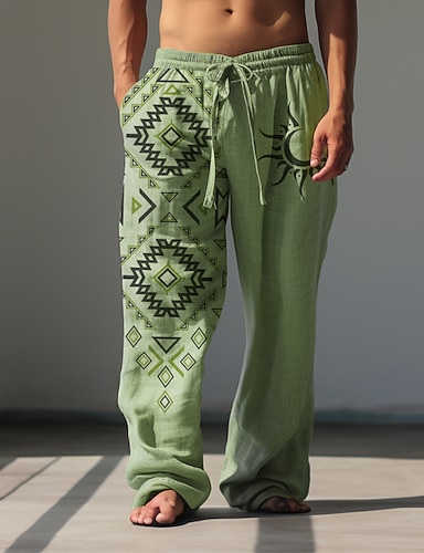 Per uomo camicia di lino Camicia Henley camicie retrò Camicia d'epoca Camicia etnica Etnico Da mare Giornaliero Blu Verde Cachi Manica corta Alla coreana Estate Primavera Abbigliamento Stampa