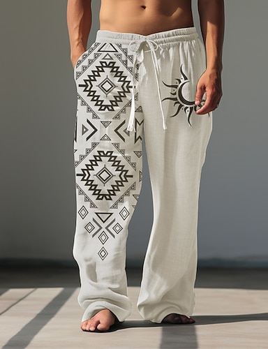 Per uomo Camicia camicia di lino camicie retrò Camicia d'epoca Camicia etnica Tribale Giornaliero Rosa Blu Kaki Manica corta Collo ripiegabile Estate Primavera Abbigliamento