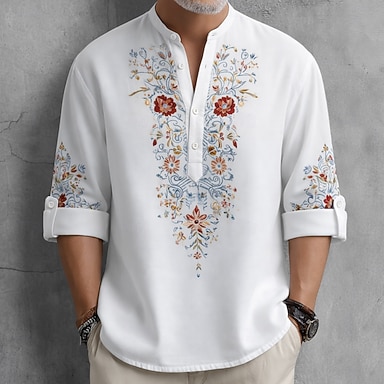 Per uomo Stampa Floreale Etnico Fiori Camicia Camicia con Bottoni Maglia Henley Manica Lunga Vintage Retrò Casuale Vacanza Matrimonio Estate Primavera Collo alla coreana Colletto Mao Stampa 3D
