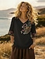 Linea ad A Lunghezza al pavimento Abito Camicia Abito da invitata a nozze Abito Formale Abito da cerimonia per signora Mezza Manica Colletto a Camicia Elegante Vintage Floreale Formale Ospite di nozze