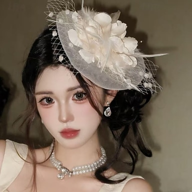 Fascinator Poliestere Matrimonio Compleanno Elegante Vintage Carino Con Fiore Tulle Copricapo Copricapo