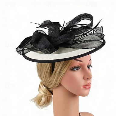 Fasce per capelli Cappelli Copricapo Fibra Cappello a piattino Cappello a cilindro Matrimonio Tè Elegante Matrimonio Con Piuma Fiocco Copricapo Copricapo