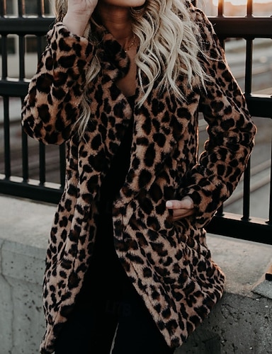 Per donna Cappotto Invernale Cappotto in Pelliccia Sintetica Caldo Confortevole Tasca Casual Leopardo Vacanza Abbigliamento quotidiano Uscire Weekend Lungo Collo ripiegato Vestibilità regolare Manica
