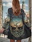 Cappotto invernale donna trench leggero confortevole stampa teschi aperto vintage casual vacanza teschio collo senza collare taglio morbido maniche lunghe abbigliamento esterno giallo blu viola