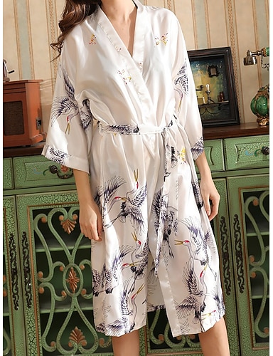 Per donna Accappatoio Moda Casual Comfort Colore Puro Pigiama in raso di seta Piuma Quotidiano Casa Manica Lunga Scollo a V Bianco Estate Primavera Autunno Vestibilità regolare