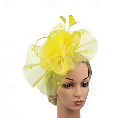 Piume Fascinatori in rete Cappelli Copricapo con piuma Cappello Fiore 1 PC Matrimonio Corsa di cavalli Copricapo per il giorno delle donne vestiti per impressionare Vestito per il giorno della