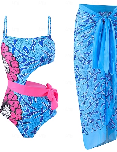 Per donna Costumi da bagno Intero Due pezzi Monokini Taglio alto Costume da bagno Controllo della Pancia Vita alta Snello Senza schiena Vacanza Abbigliamento da Spiaggia Floreale Collo asimmetrico