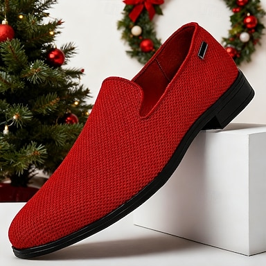 scarpe slip-on da uomo in maglia traspirante rossa, mocassini leggeri e casual da passeggio per l'estate, i viaggi e la moda streetwear