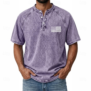 Per uomo Grafico Bandiera Americana Maglietta Camicia Demin Camicia 100% cotone lavaggio acido Manica Corta Vintage Streetwear Casual Casuale Casa Streetwear Autunno & Inverno Estate Primavera Nero