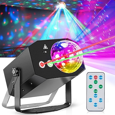 Luci laser per feste dj, luci da discoteca con luci stroboscopiche rgb, spettacolo musicale attivato dal suono/telecomando per feste dj, palco, karaoke, club, casa, compleanno