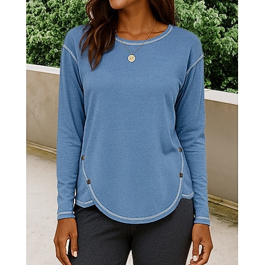 Per donna Felpa Pullover Bottoni Semplice Casual Manica Lunga Girocollo Top Regolari Streetwear Abbigliamento Quotidiano Blu Nero Marrone Verde Primavera Autunno Inverno