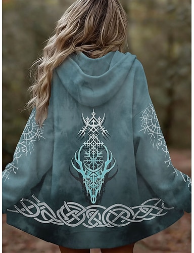 Per donna Felpe con cappuccio Grafico Geometrico Tribale Punk Attivo Vintage Manica Lunga Con Cappuccio Top Regolari Casuale Casa Abbigliamento Quotidiano Blu Viola Marrone Verde Autunno Inverno