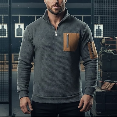 Per uomo Maglia Felpa con zip corta Nero Bianco Blu marino Cachi Grigio Bavero Semplice Con zip Tasca Frontale Testurizzato Sport & Outdoor Casuale Quotidiano Streetwear Cool Designer Autunno