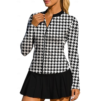 Per donna Unisex Geometrico Pied-de-poule Top Maglietta sportiva Maglia da tennis Manica Lunga Cerniera Floreale UPF50+ Resistente ai Raggi UV Alta elasticità Traspirante Pallavolo Tennis Golf Il