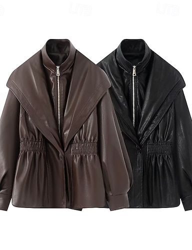 Per donna Giacca in Ecopelle Giacca da Biker Streetwear Tinta unita Uscire Corto Collo a Lancia Vestibilità regolare Manica Lunga Capispalla Nero Vino Marrone Autunno Inverno