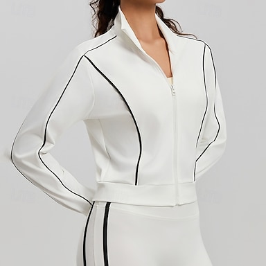 Per donna Tinta unita Giaccia da corsa Giacca da esterno Giacca sportiva Estate Primavera Autunno Cerniera completa Snello Manica Lunga Asciugatura Rapida Leggero Elastico Traspirante Palestra Corsa