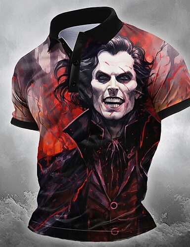 Giorno dei Morti Per uomo Teschio Polo Maglia da golf Manica Corta Magliette polo Camicie con Colletto Casual Orrore Abbigliamento da festa Abiti da festa Stampa 3D Bottoni Primavera & Estate Bianco