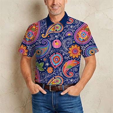 Retrò Vintage Hippie Anni '70 Camicia Maniche corte Hippie Paisley Costume Per uomo Festival Musicale Feste Abbigliamento quotidiano Adulti Camicia Primavera & Estate