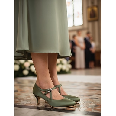 Tacco T-Strap in Raso Verde Salvia per Donne - Pumps con Tacco Medio Vintage Gatsby con Chiusura a Fibbia Scarpe Eleganti per Matrimoni e Balli