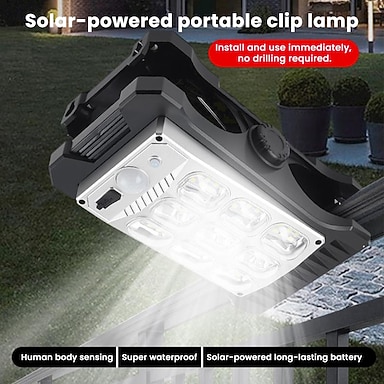 Lampada da parete solare per esterni IP65 impermeabile ad alta luminosità con clip, lampada LED intelligente con sensore di movimento, non richiede foratura, giardino, patio, recinzione, scale,