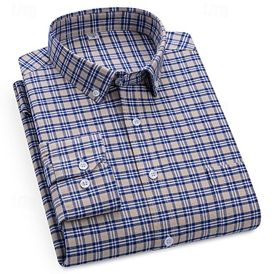 Per uomo Camicia Camicia elegante Camicia button-down Camicia Oxford Camicia a quadri A Quadri / A Righe / Chevron / Rotondo Abbigliamento quotidiano Abbigliamento Aziendale Giallo Chiaro Giallo