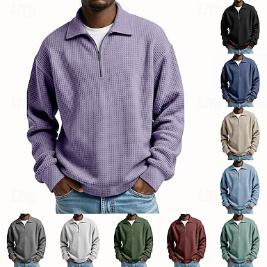 Per uomo Maglietta Maglietta a Maglia Waffle Maglietta con Zip a Quarti Manica Lunga Collo alla coreana Zip a un quarto Primavera Autunno Primavera & Autunno Tinta unica Maglieria Vintage Quotidiano