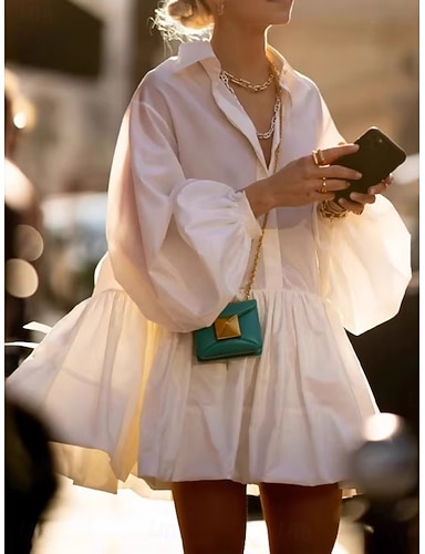 Per donna Mini Abito Abito Camicia Vestito Casual Moda Moderno Manica a Palloncino All'aperto Vacanza Uscire Vestibilità comoda Semplice Manica Corta Colletto a Camicia Bianco Estate Primavera
