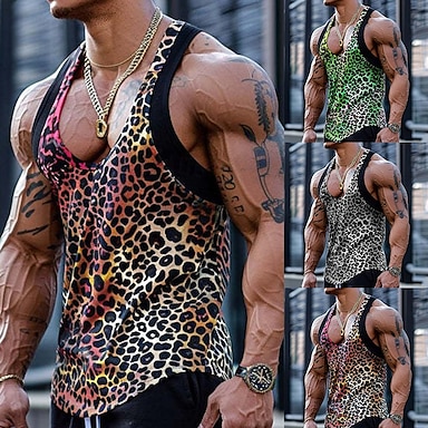Per uomo Canotta Gilet Canottiera Maglietta senza maniche Senza Maniche Collo a U Estate Leopardo Moda Classico Confortevole Girocollo Streetwear Casuale Sportivo Rosso Verde Grigio scuro Maglietta