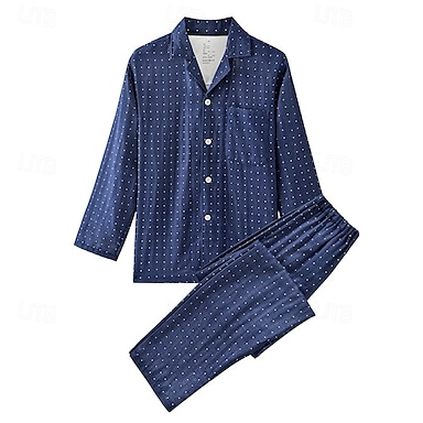 Per uomo Pigiami Set Pigiama Top e pantaloni del pigiama 1 Set Geometrico Moda Elegante Classico Casa Quotidiano Da letto Cotone Comodità Morbido Traspirante Bavero Manica Lunga Camicia Pantalone