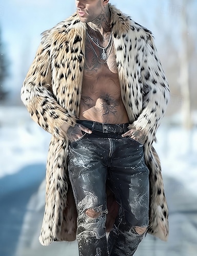 Per uomo Cappotto Invernale Cappotto in Pelliccia Sintetica All'aperto Casuale Calore Termico Colletto in pile Autunno Inverno Leopardo Moda Streetwear Bavero sciallato Lungo Cachi Giacca