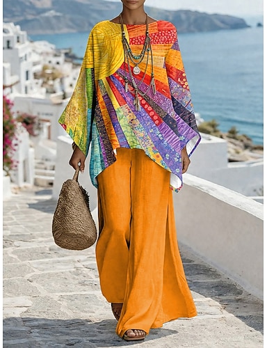 Per donna Set di Pantaloni Manica 3/4 Girocollo Grafico Geometrico Stampato Moda Streetwear Casuale Quotidiano All'aperto Blu Viola Arancione Estate Vestibilità comoda
