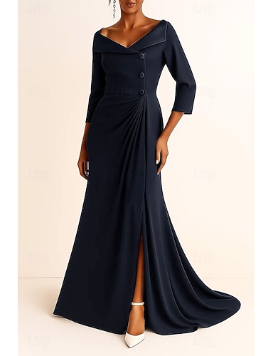 Per donna Abito da smoking Linea ad A Formale Ospite di nozze Raso Crêpe Elegante Manica 3/4 plissettata Lunghezza al pavimento Scollo a V