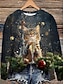 Felpa da donna di Natale con gatti e albero di Natale grafica animale calda classica casual a maniche lunghe collo rotondo top regolari home street quotidiani stampa gialla arancione marrone beige