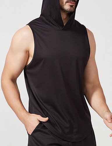 Per uomo Canotte Palestra Felpa con cappuccio senza maniche Con cappuccio Senza maniche Sportivo Da mare Per uscire Casual / quotidiano Palestra Asciugatura rapida Traspirante Morbido Liscio Nero