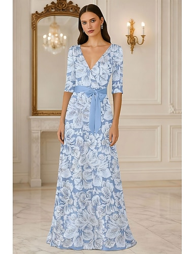 Linea ad A Abito Lunghezza al pavimento Vestito maxi Vestito da Festa Abito da Cocktail Abito da cerimonia per signora Mezza Manica Scollo a V Elegante Vintage Lussuoso Formale Ospite di nozze