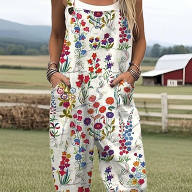 Per donna Salopette Attivo Floreale Senza Maniche Senza maniche Dritto Collo quadrato Tasca con tasca Vacanza Quotidiano Vestibilità comoda Rosso Blu Verde Estate